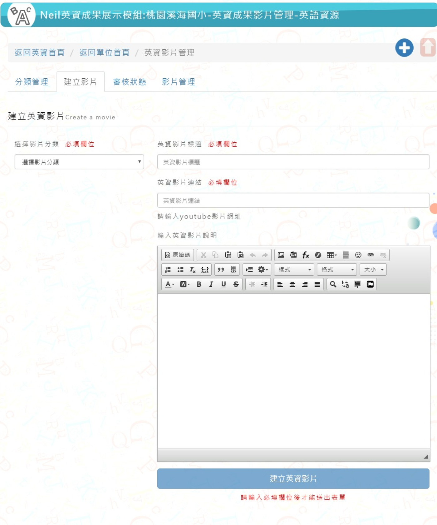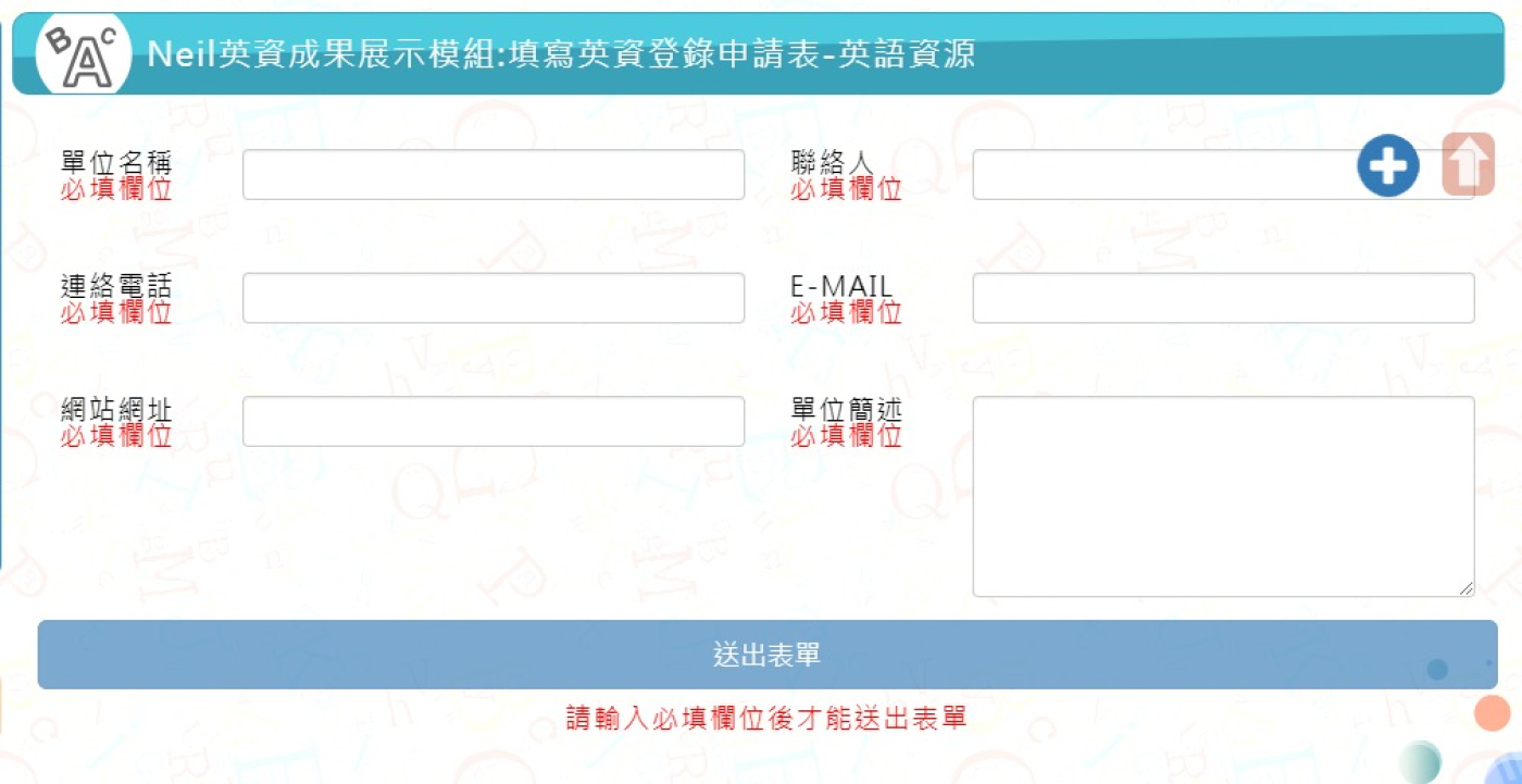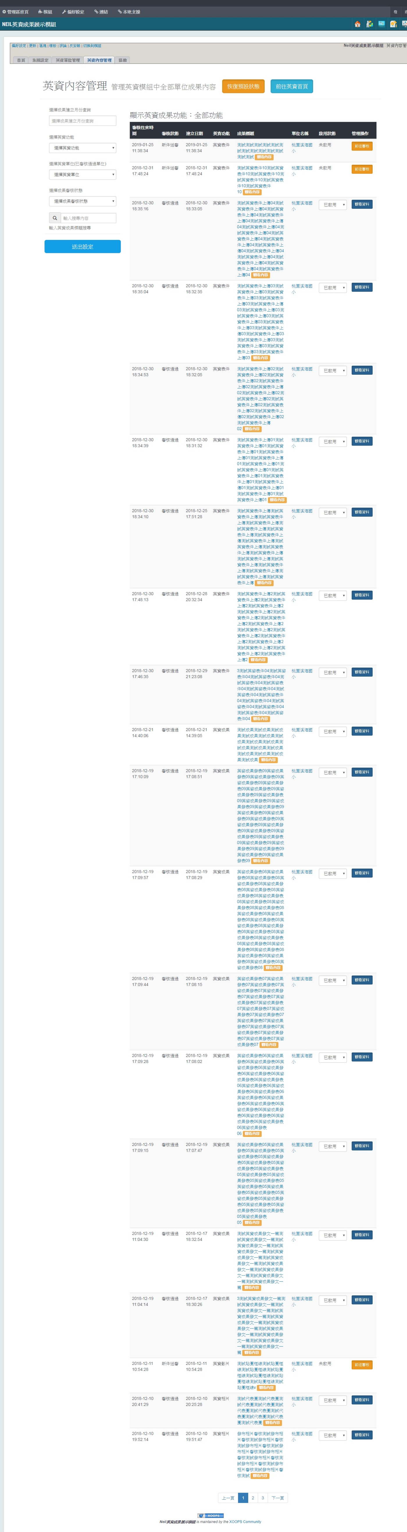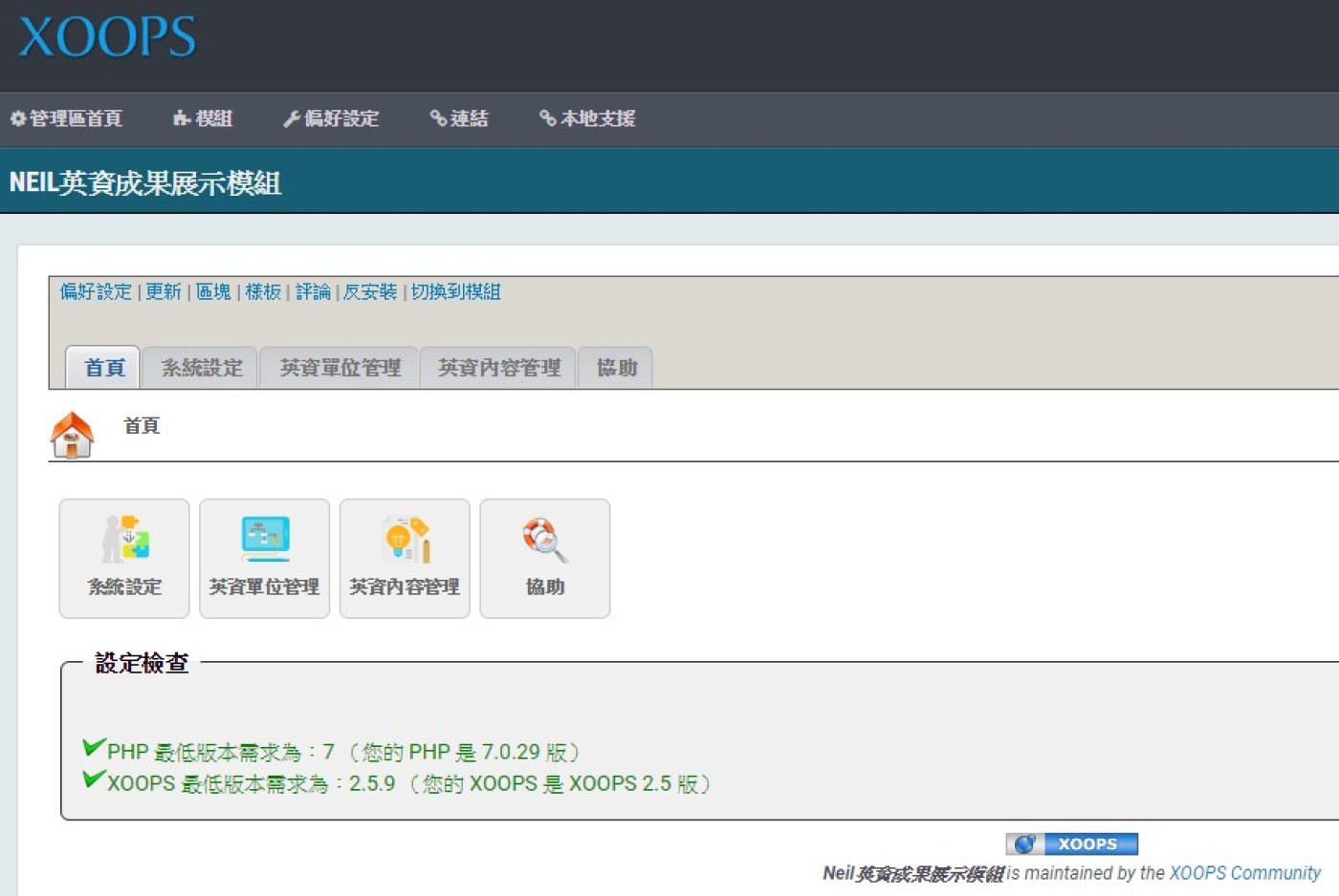 開啟上方區塊 作品展示:Neil英資成果模組開發-網站設計 作品首頁 客製模組開發 瀏覽數:201 建立日期:2020-05-24 搜尋 選擇作品分類 網站設計模組開發佈景設計歷史作品 選擇建立日期 114年 (2025)113年 (2024)112年 (2023)111年 (2022)110年 (2021)109年 (2020)108年 (2019)107年 (2018)106年 (2017)105年 (2016)104年 (2015)103年 (2014)102年 (2013)101年 (2012) 送出 ::: 作品項目 選擇後頁面內容會更新 選擇作品項目 結構優化SEO優化無障礙優化無障礙A無障礙AA 模組開發 客製模組開發 公版模組開發 模組程式修改 前往作品諮詢 0 作品諮詢紀錄 0 頁面QRcode 點選切換上一張圖 點選切換下一張圖 客製模組開發:Neil英資成果模組開發 作品類型:展示作品 作品編號:PTN-0033 Neil英資成果模組,採多人用戶架構,提供各單位獨立的英資管理空間,支援【影片、相片、新聞、表件】四大類型內容。模組具父層審核權限與單位分權管理機制,單位管理員僅能編輯自身資料,所有成果皆須審核通過後發布,協助英資網站集中呈現各校教育資源成果,推動經驗分享與交流。 作品項目:結構優化 設計方案: Xoops模組開發方案 CMS版本: Xoops2.5.9 網站語言: 繁體中文 ::: 緣起說明 工作項目 功能說明 更新紀錄 Neil網站設計工坊 受 桃園市政府教育局 與 桃園市新埔國小 委託,客製化開發【Neil英資成果模組】。 此模組為多人用戶版系統,設計重點在於提供各單位獨立的英資成果管理環境,同時具備完善的權限與審核機制: 模組設有父層管理群組,負責統一審核與發布英資內容。 各英資單位(學校)擁有獨立資料夾,可管理四大類型的英資成果:【英資影片】、【英資相片】、【英資新聞】、【英資表件】。 各單位管理員僅能管理所屬單位的英資內容,無法編輯其他單位資料。 所有英資成果在發布前,必須先通過英資模組管理員審核。 此模組的主要目標,是打造一個集中化的英資成果展示平台,讓各級學校能於英資網站上發表並分享其教育資源成果,達到推廣與交流之效。 開發環境 php版本:php7.3.6 資料庫:mysql5.5包含以上 Xoops版本:Xoops2.5.10 模組名稱:neilenglishresults 使用程式:AJAX,JQuery,php7,smarty。 介面框架:bootstrap3 / html5 / 自行撰寫的css樣式 模組語系: 中文語系,語系抽離樣板建立語系檔 管理權限 管理員->可以管理全部英資成果模組功能 單位管理員權限->可以管理單位的(簡介/影片/相片/新聞/表件)五項英資成果功能。 模組功能 自動郵件通知管理員及單位管理員功能(審核狀態)。 系統自動刪除超過設定天數的成果資料及檔案。 備註:須配合neillibrary模組使用 開發工時 : 90天(不含假日),已完成測試除錯正式上線。 Neil英資成果模組功能說明-2019 後台功能 系統設定 settings.php 後端顯示內容幾則 前端顯示內容幾則 系統自動刪除內容天數 英資單位資料夾前綴 儲存最新一筆編輯資料 選擇英資首頁資料排列方式 英資單位代表圖寬度 英資單位管理內容顯示幾則 英資影片前端顯示幾則 英資相片前端顯示幾則 英資成果前端顯示幾則 英資表件前端顯示幾則 英資相片小縮圖寬度 英資相片大圖寬度 英資單位管理 enadmin.php 英資單位總表 資料查詢功能 審核英資單位申請 可變更英資單位管理員 英資單位前台顯示排序 英資內容管理 encontentadmin.php 英資內容列表(影片/相片/新聞/表件) 英資成果查詢功能(月份/功能/單位/審核狀態/關鍵字) 啟用與關閉英資成果內容。 前往英資頁面進行審核操作。 前台功能 英資首頁 index.php 英資登錄申請表(管理員可以審核通過或刪除該申請) 英資單位列表 查詢英資成果內容 英資單位首頁 unitindex.php 編輯英資單位 觀看英資單位簡介 最新英資成果陳列(影片/相片/新聞/表件) 查詢英資成果內容 英資影片moviecenter.php 全部英資影片陳列 單位英資影片陳列 英資影片內容頁面(影片展示/資訊陳列/審核狀態/編輯刪除/fb留言功能) 查詢英資影片內容(可與分類交叉查詢) 英資影片管理(全ajax介面) 英資影片分類管理(4級分類) 新增/編輯英資影片 審核狀態列表 影片管理(已審核通過的影片) 英資相片albumcenter.php 全部英資相片陳列 單位英資相片陳列 英資相片內容頁面(多圖播放器/資訊陳列/審核狀態/編輯刪除/fb留言功能) 查詢英資相片內容(可與分類交叉查詢) 英資相片管理(全ajax介面) 英資相片分類管理(4級分類) 新增/編輯英資相片(可多圖上傳,可刪除與重複上傳圖片) 審核狀態列表 相片管理(已審核通過的相片) 英資成果newscenter.php 全部英資成果陳列 單位英資成果陳列 英資成果內容頁面(資訊陳列/審核狀態/編輯刪除/fb留言功能) 查詢英資成果內容(可與分類交叉查詢) 英資成果管理(全ajax介面) 英資成果分類管理(4級分類) 新增/編輯英資成果(ck編輯器圖文編輯) 審核狀態列表 成果管理(已審核通過的成果) 英資表件filecenter.php 全部英資表件陳列 單位英資表件陳列 英資表件內容頁面(檔案下載自動壓縮zip格式/資訊陳列/審核狀態/編輯刪除/fb留言功能) 查詢英資表件內容(可與分類交叉查詢) 英資表件管理(全ajax介面) 英資表件分類管理(4級分類) 新增/編輯英資表件(上傳檔案/重新上傳覆蓋舊檔) 審核狀態列表 表件管理(已審核通過的表件) 英資搜尋search.php 可以輸入關鍵字搜尋(影片/相片/新聞/表件)成果內容。 審查狀態 新建送審 審查退件 資料複審 審查通過 區塊功能 英資影片區塊 英資相簿區塊 成果消息區塊 